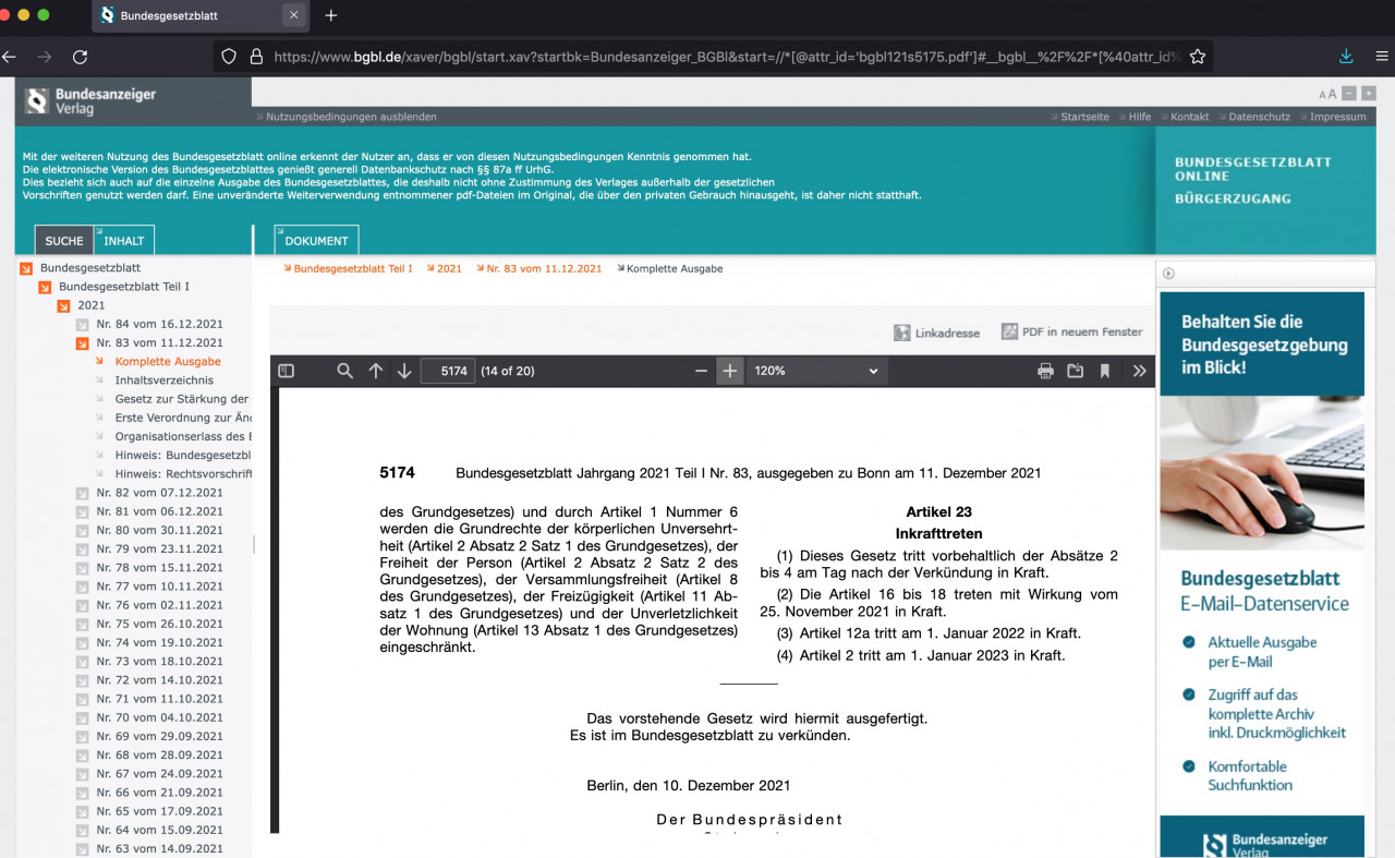 Quelle: BGBL Bundesgesetzblatt Nr. 83 vom 11.12.2021 auf S. 14