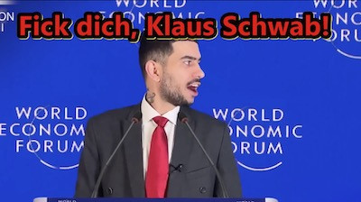 Ich danke Ihnen, für die Gelegenheit, hier sprechen zu dürfen, um zu sagen: "F*ck dich, Klaus Schwab!"